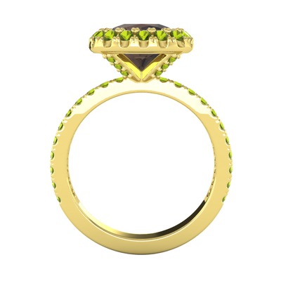 Dumanlı kuvars ve peridot 14 ayar altın yüzük
