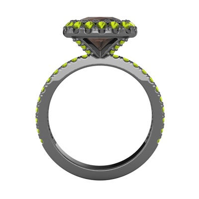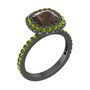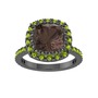 Dumanlı kuvars ve peridot 925 ayar siyah rodyum kaplama gümüş yüzük