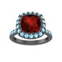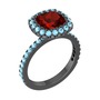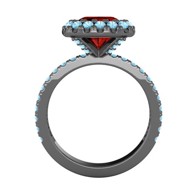Garnet ve akuamarin 925 ayar siyah rodyum kaplama gümüş yüzük
