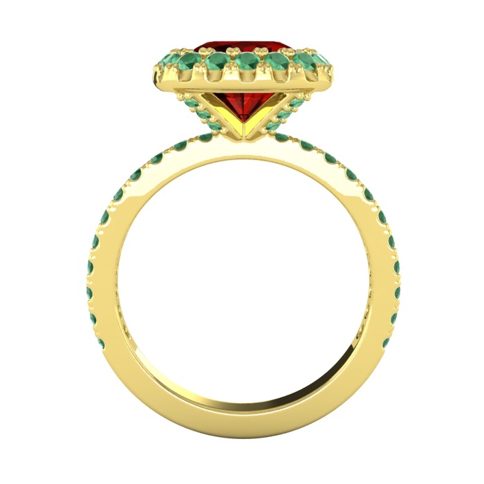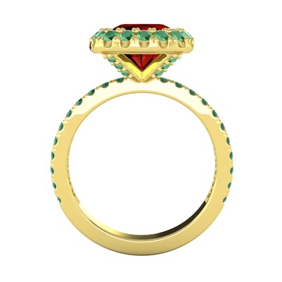 Garnet ve kök zümrüt 14 ayar altın yüzük