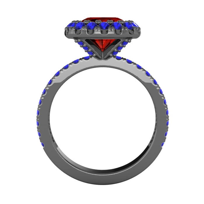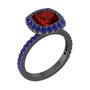 Garnet ve lab safir 925 ayar siyah rodyum kaplama gümüş yüzük