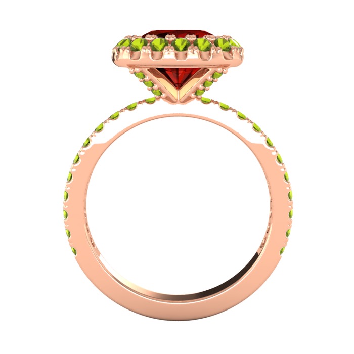 Garnet ve peridot 14 ayar rose altın yüzük