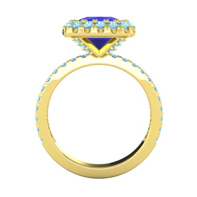 Lab safir ve akuamarin 14 ayar altın yüzük