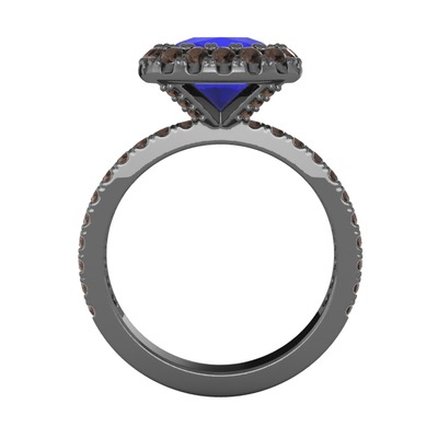 Lab safir ve dumanlı kuvars 925 ayar siyah rodyum kaplama gümüş yüzük