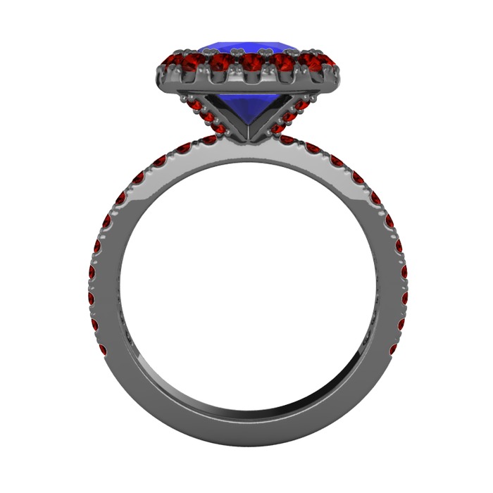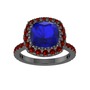 Lab safir ve garnet 925 ayar siyah rodyum kaplama gümüş yüzük