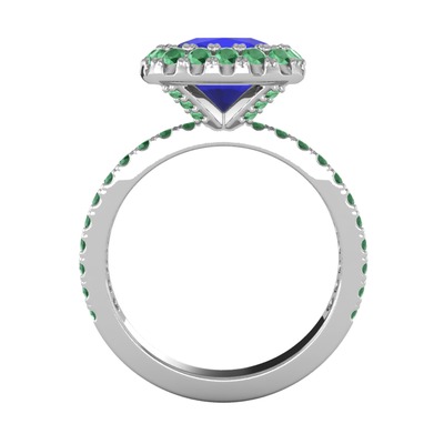 Lab safir ve kök zümrüt 14 ayar beyaz altın yüzük