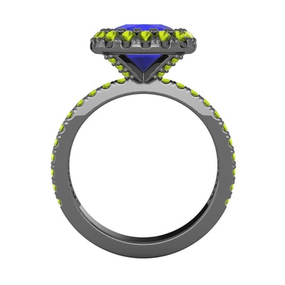 Lab safir ve peridot 925 ayar siyah rodyum kaplama gümüş yüzük