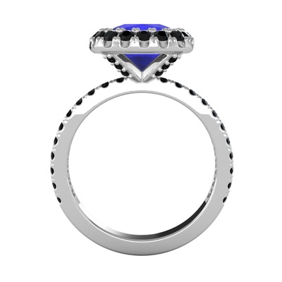 Lab safir ve siyah zirkon 18 ayar beyaz altın yüzük