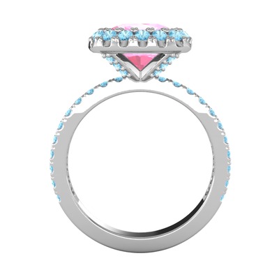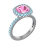 Pembe kuvars ve akuamarin 18 ayar beyaz altın yüzük