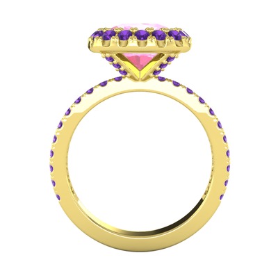 Pembe kuvars ve ametist 18 ayar altın yüzük