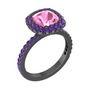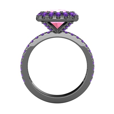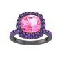 Pembe kuvars ve ametist 925 ayar siyah rodyum kaplama gümüş yüzük