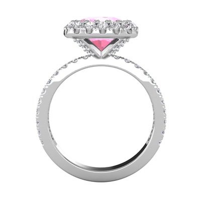 Pembe kuvars ve beyaz zirkon 925 ayar gümüş yüzük