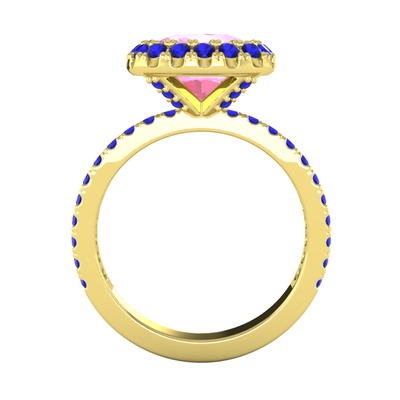 Pembe kuvars ve lab safir 18 ayar altın yüzük