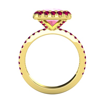 Pembe kuvars ve rodolit garnet 18 ayar altın yüzük