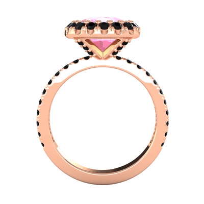 Pembe kuvars ve siyah zirkon 925 ayar rose altın kaplama gümüş yüzük