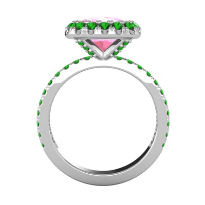 Pembe kuvars ve yeşil kuvars 14 ayar beyaz altın yüzük