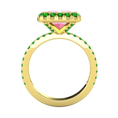 Pembe kuvars ve yeşil kuvars 925 ayar altın kaplama gümüş yüzük