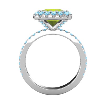 Peridot ve akuamarin 18 ayar beyaz altın yüzük