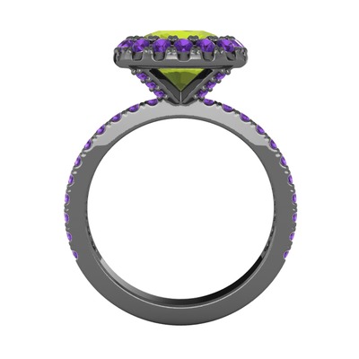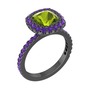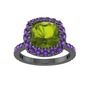 Peridot ve ametist 925 ayar siyah rodyum kaplama gümüş yüzük