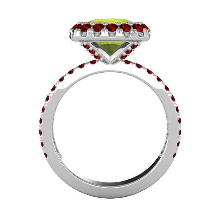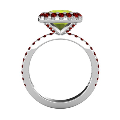 Peridot ve garnet 8 ayar beyaz altın yüzük