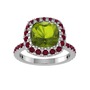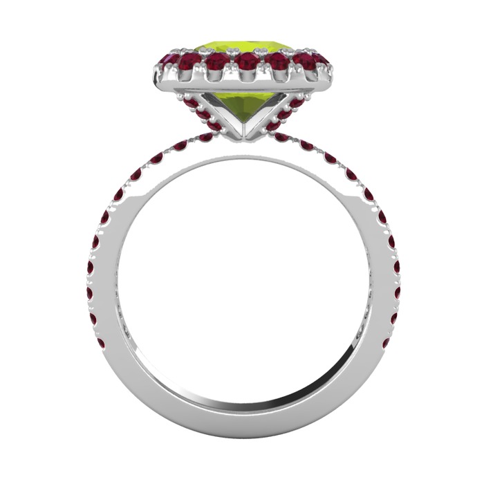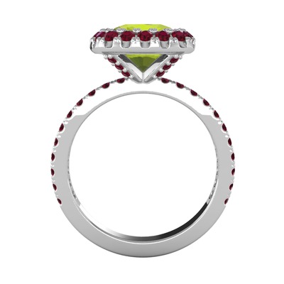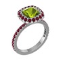Peridot ve kök yakut 8 ayar beyaz altın yüzük