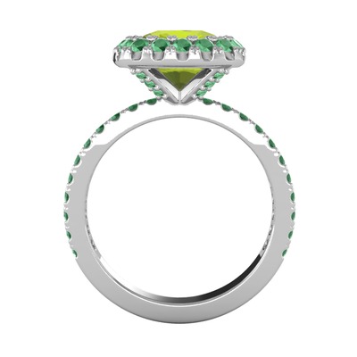 Peridot ve kök zümrüt 8 ayar beyaz altın yüzük