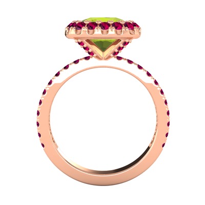 Peridot ve rodolit garnet 18 ayar rose altın yüzük