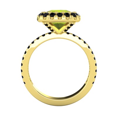 Peridot ve siyah zirkon 14 ayar altın yüzük