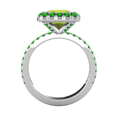 Peridot ve yeşil kuvars 14 ayar beyaz altın yüzük