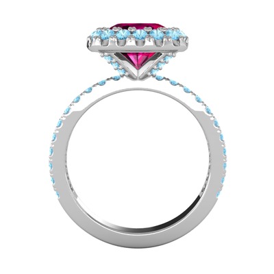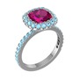Rodolit garnet ve akuamarin 8 ayar beyaz altın yüzük