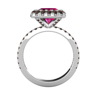 Rodolit garnet ve dumanlı kuvars 14 ayar beyaz altın yüzük