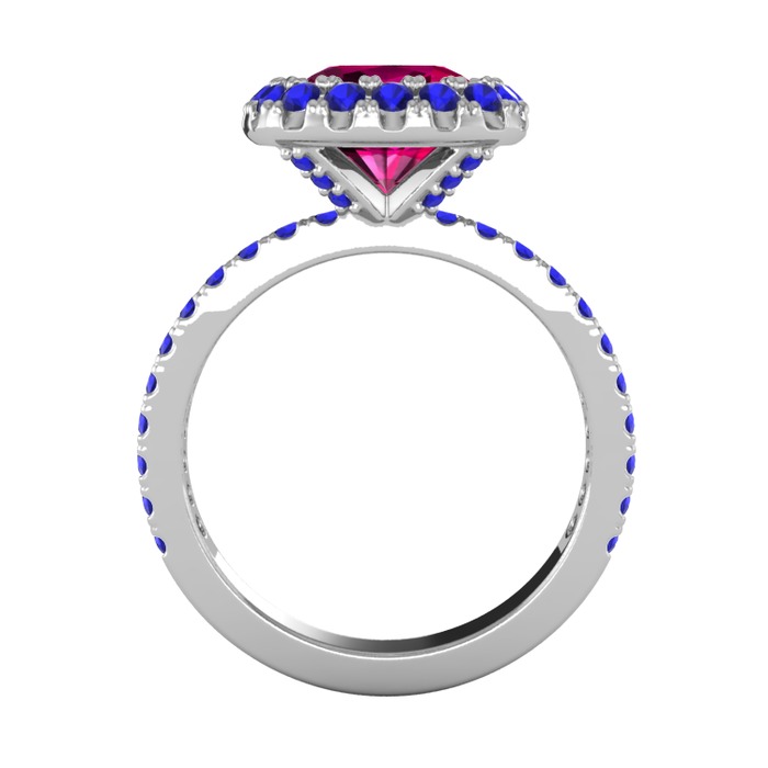 Rodolit garnet ve lab safir 14 ayar beyaz altın yüzük