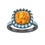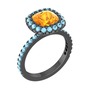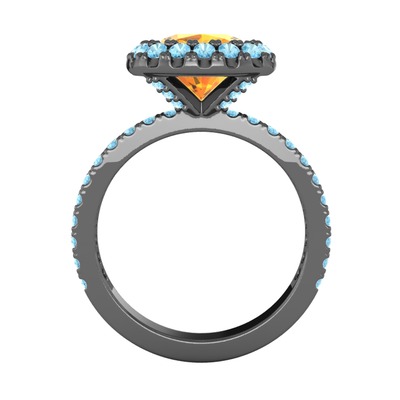 Sitrin ve akuamarin 925 ayar siyah rodyum kaplama gümüş yüzük