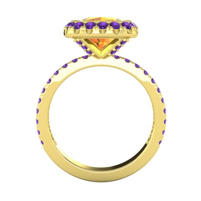 Sitrin ve ametist 925 ayar altın kaplama gümüş yüzük