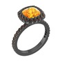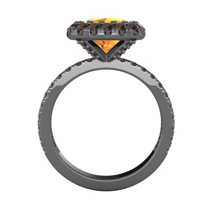 Sitrin ve dumanlı kuvars 925 ayar siyah rodyum kaplama gümüş yüzük