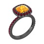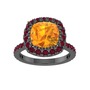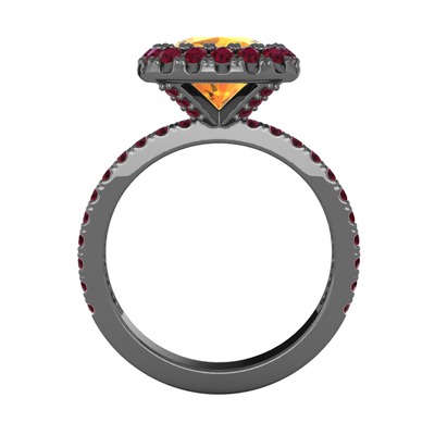 Sitrin ve kök yakut 925 ayar siyah rodyum kaplama gümüş yüzük