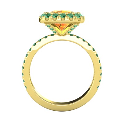 Sitrin ve kök zümrüt 925 ayar altın kaplama gümüş yüzük