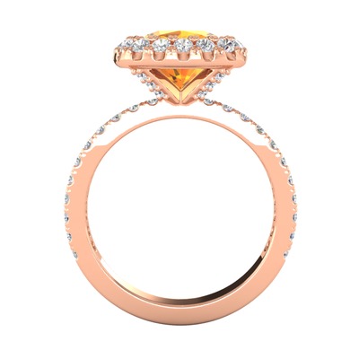 Sitrin ve pırlanta 925 ayar rose altın kaplama gümüş yüzük (0.84 karat)