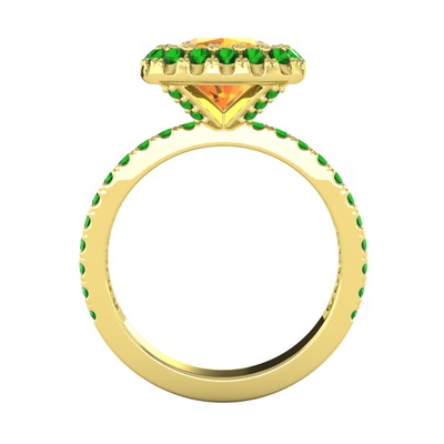 Sitrin ve yeşil kuvars 925 ayar altın kaplama gümüş yüzük