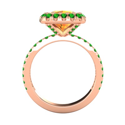 Sitrin ve yeşil kuvars 925 ayar rose altın kaplama gümüş yüzük