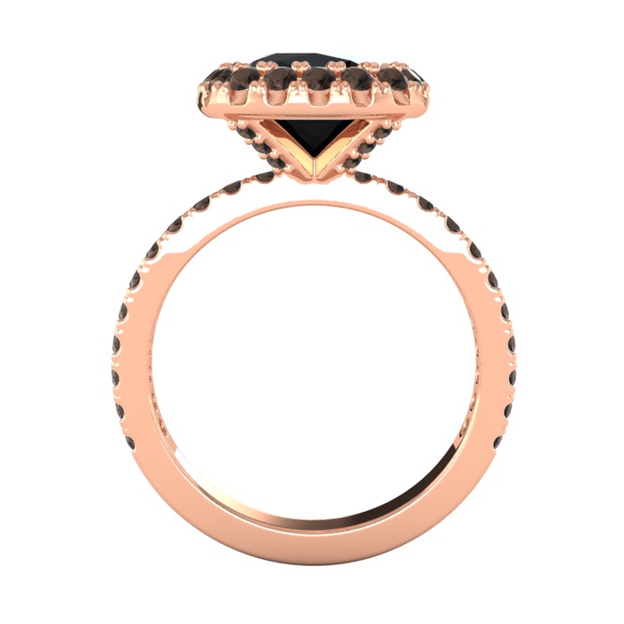 Siyah zirkon ve dumanlı kuvars 925 ayar rose altın kaplama gümüş yüzük