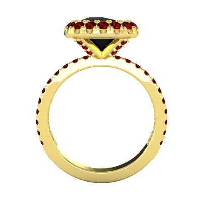 Siyah zirkon ve garnet 18 ayar altın yüzük