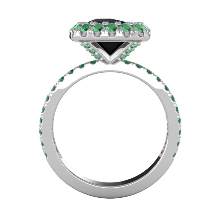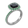 Siyah zirkon ve kök zümrüt 18 ayar beyaz altın yüzük