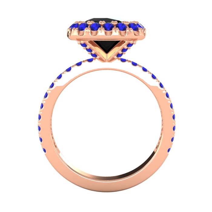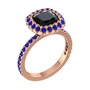 Siyah zirkon ve lab safir 925 ayar rose altın kaplama gümüş yüzük