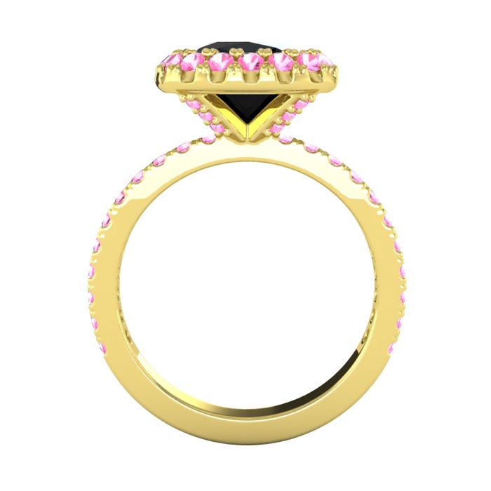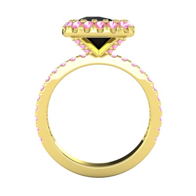 Siyah zirkon ve pembe kuvars 14 ayar altın yüzük