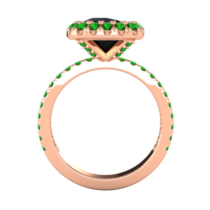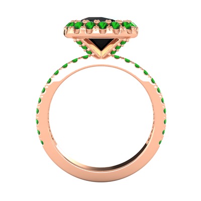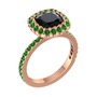 Siyah zirkon ve yeşil kuvars 14 ayar rose altın yüzük