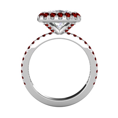 Swarovski ve garnet 14 ayar beyaz altın yüzük