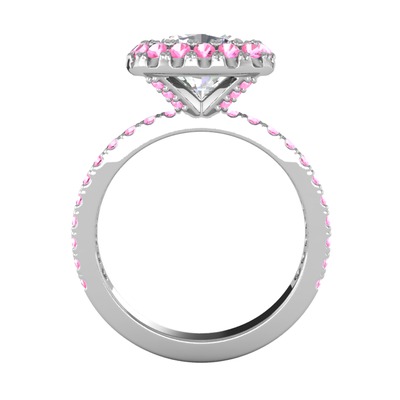 Swarovski ve pembe kuvars 8 ayar beyaz altın yüzük