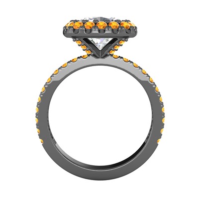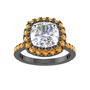 Swarovski ve sitrin 925 ayar siyah rodyum kaplama gümüş yüzük
