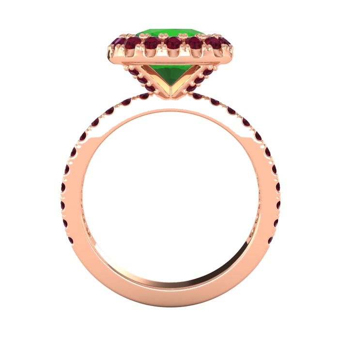 Yeşil kuvars ve kök yakut 8 ayar rose altın yüzük